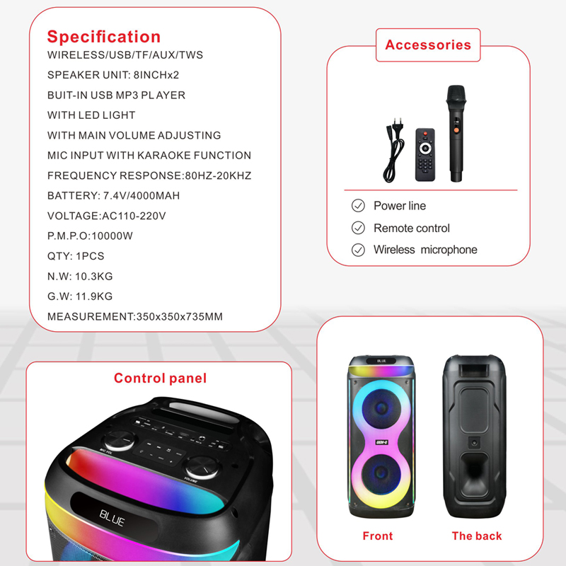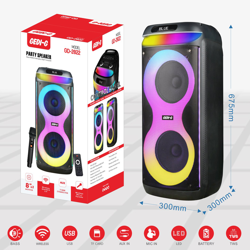 Аккумуляторная колонка 2*8″ 80Вт Gedi-2822