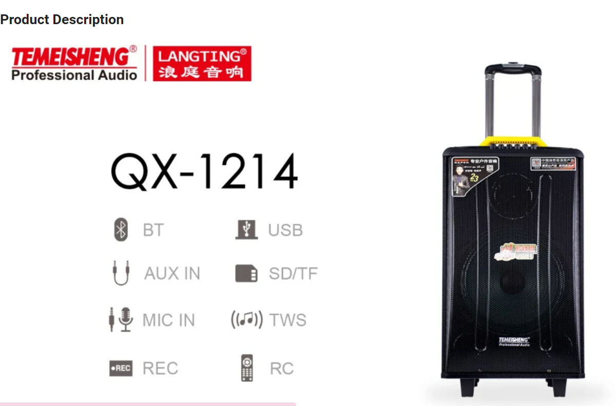 Temeisheng QX-1214 динамик 12″ сабвуфер перезаряжаемый портативный динамик с батареей
