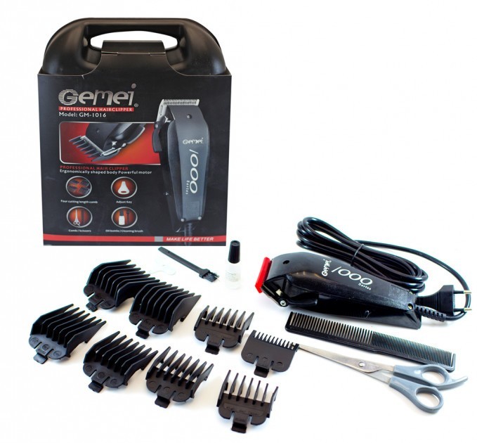 Машинка для стрижки волос Gemei GM 1016 – профессиональный парикмахерский инструмент, который можно использовать для ухода за волосами любого типа. Расческа и ножницы, а также 4 насадок, которые идут в комплекте, позволяют выполнить практически любую стрижку без особых хлопот.