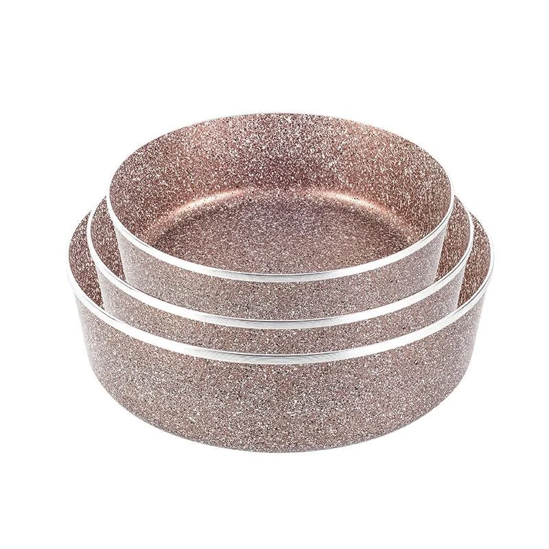 состоит из 3-х противней разного объема, диаметром 22, 26 и 30 см. Противни изготовлены из алюминия с высококачественным антипригарным гранитным покрытием.