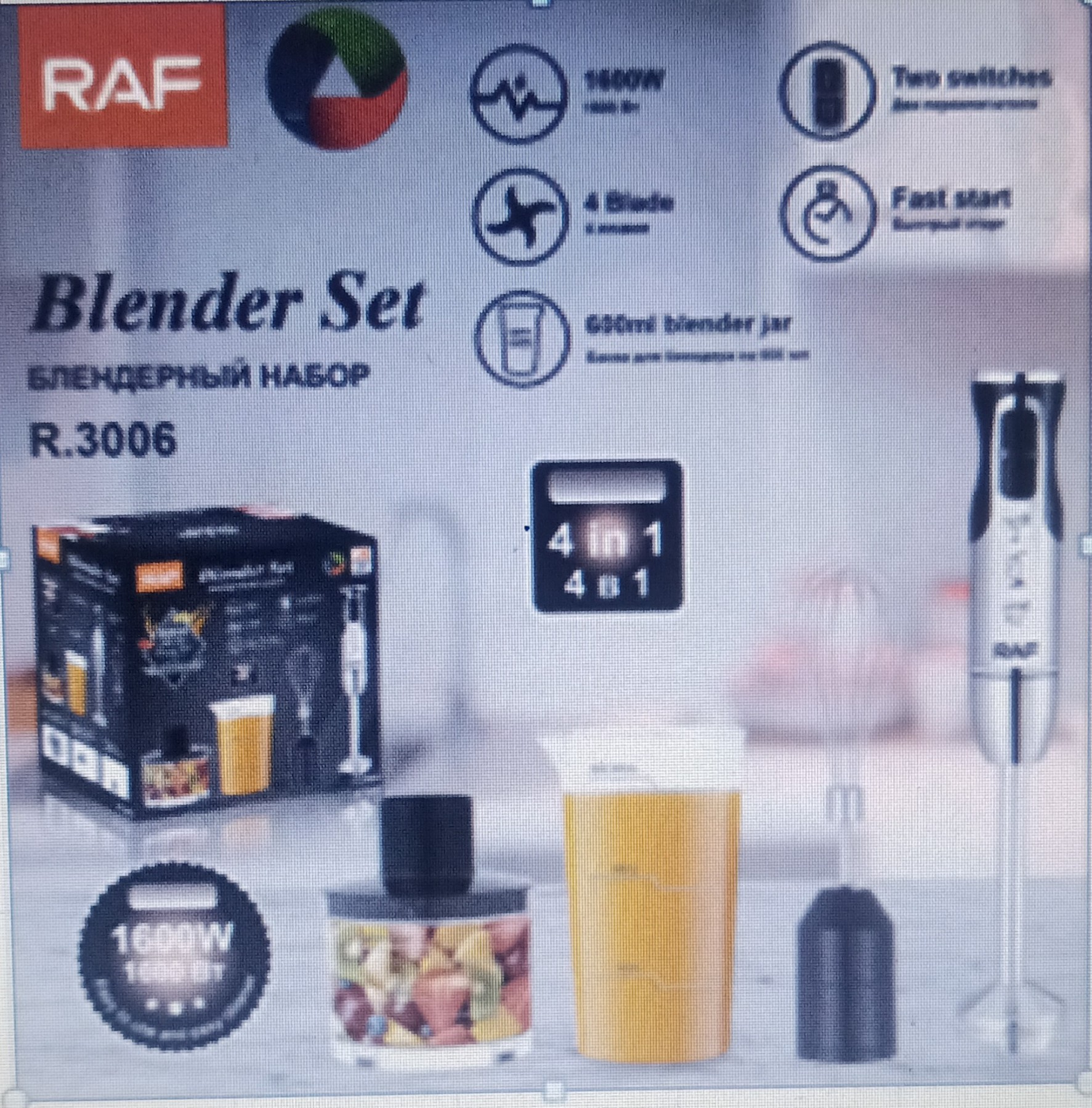 Погружной блендер мощностью 1600Вт 4в1 RAF 3006
