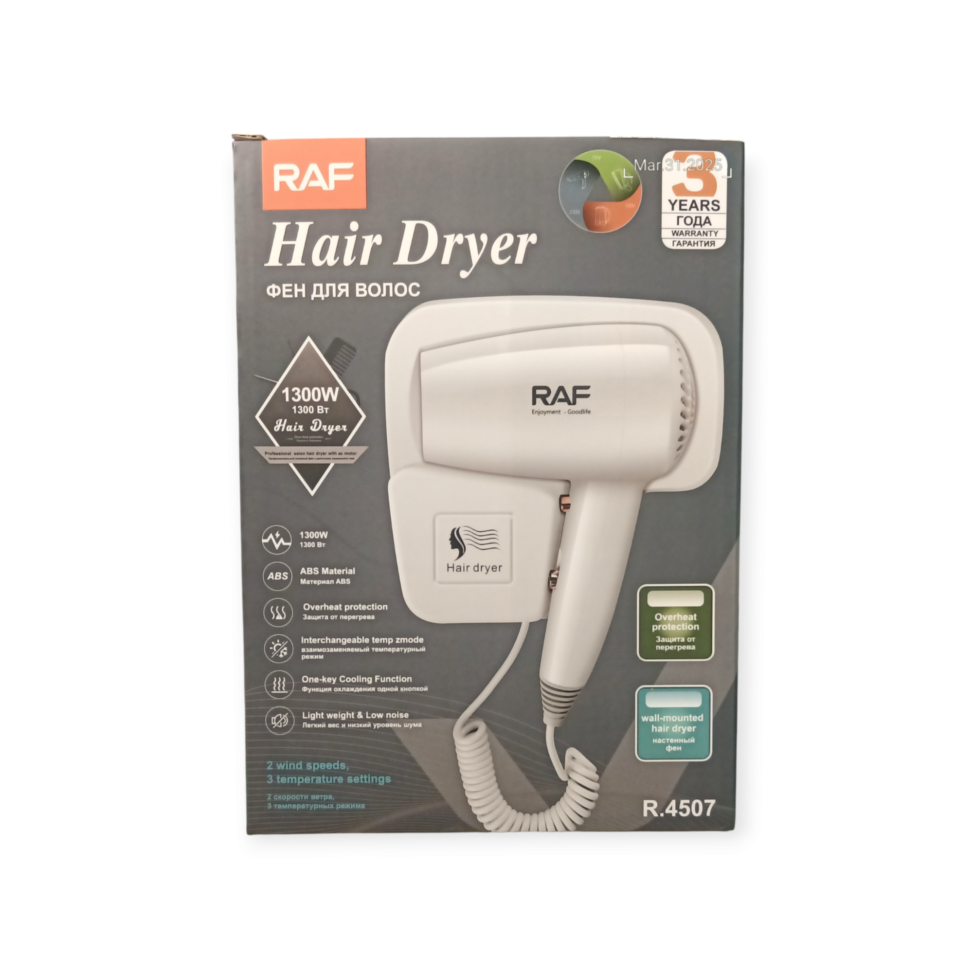 Фен для волос настенный RAF 4507