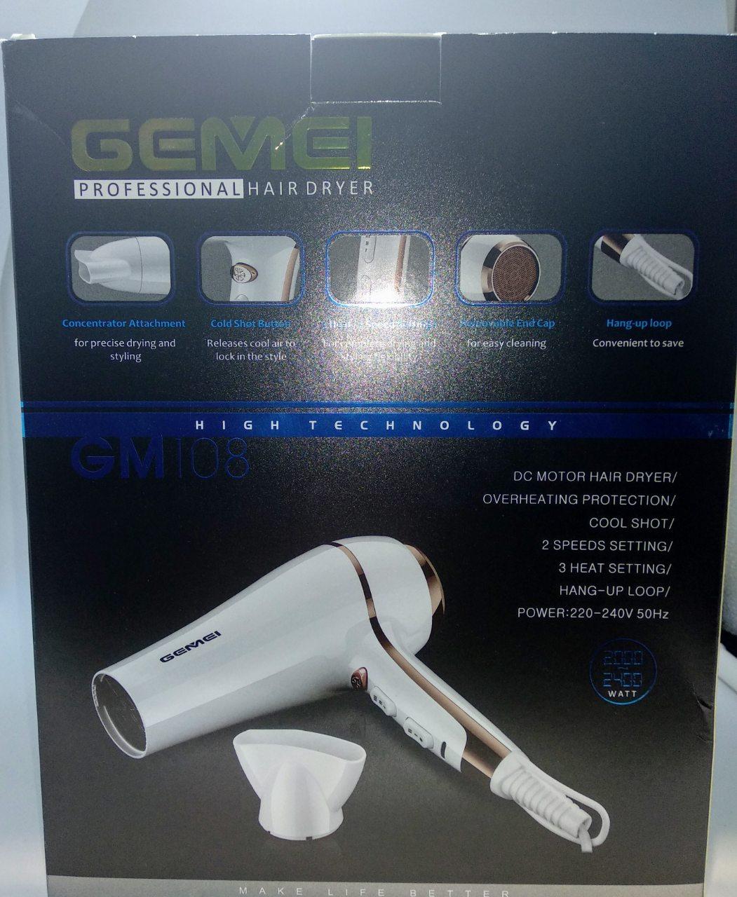 Фен для укладки волос c насадкой Gemei GM108, мощностью 2000w — 2400w