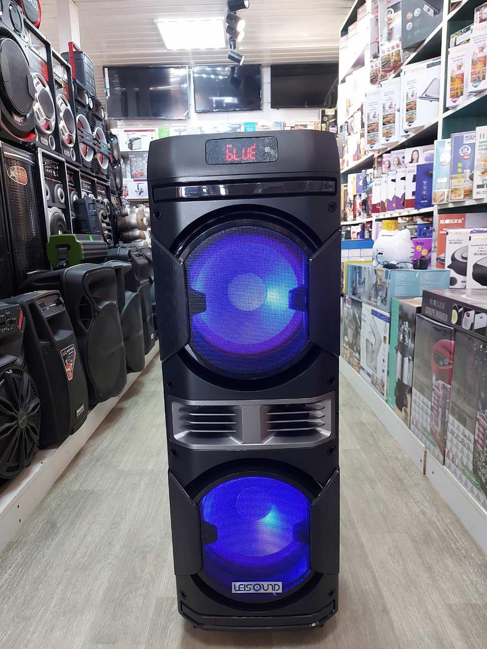 Два динамика 10″ 12V/24V,USB*2/TF/FM Radio/AUX,LED дисплей,подсветка, один микрофон. Караоке.